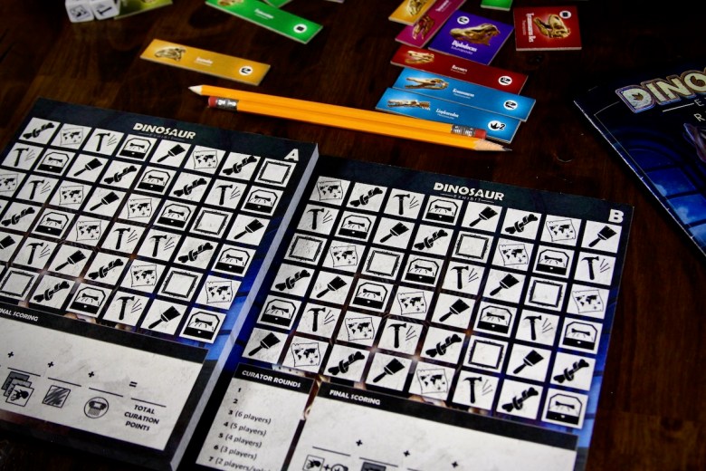 I genuinely had fun playing this with my kids. And they beat me! I believe on my first game I came in last place, behind a 7 and a 9 year old and I was not holding myself back. I haven’t found many roll and writes that my youngest child can play confidently. She is 7 years old and was able to play Dinosaur Exhibit independently once she got the hang of the rules. Adults playing will have plenty of their own decisions to make but still should have time to coach children if the need arises. In our case it wasn’t really necessary.