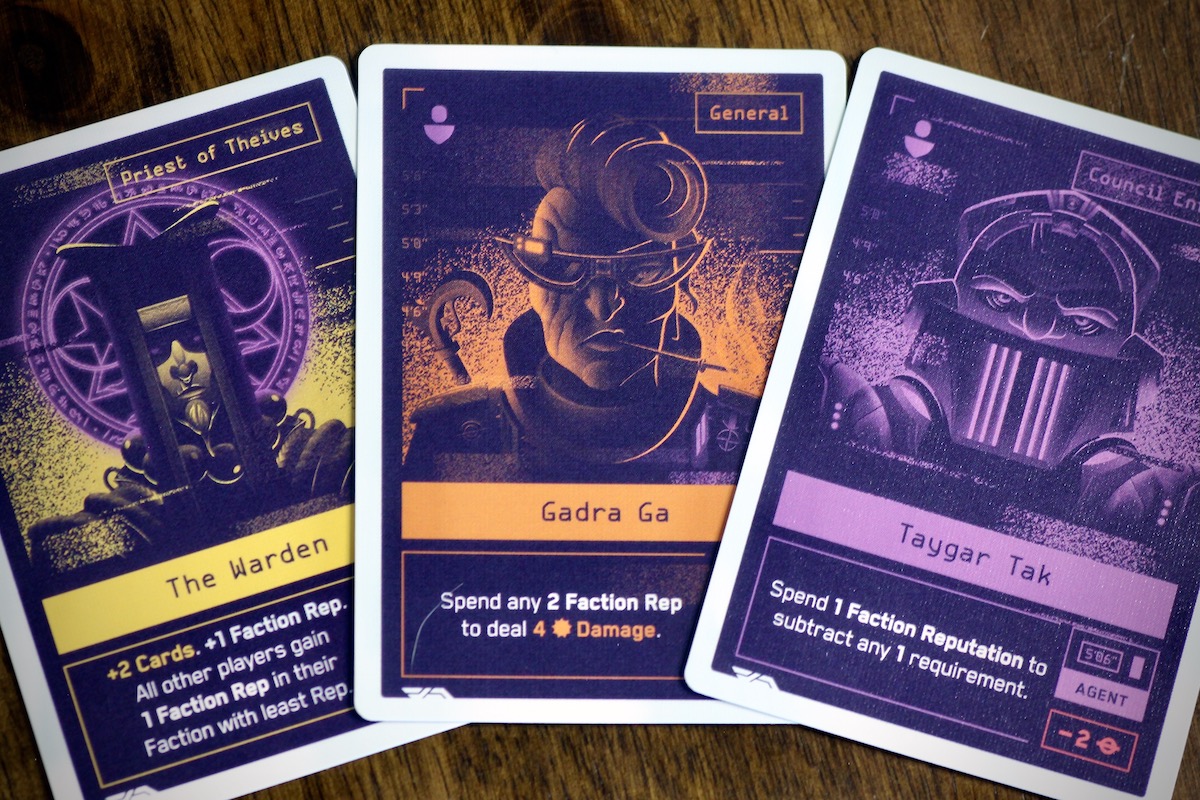 Partnerships come with huge risks, and allowing any player to amass a lot of Faction Rep is usually a mistake. I have seen people able to make significant Prestige gains by spending their Faction Rep creatively. Players must pay very close attention to their opponents’ Reputation Terminals and try to anticipate when someone is plotting a big move. Sometimes the benefits of allyship might not outweigh the risks.