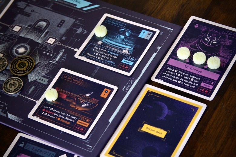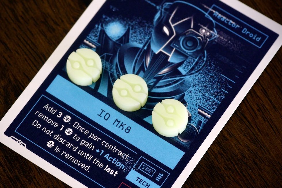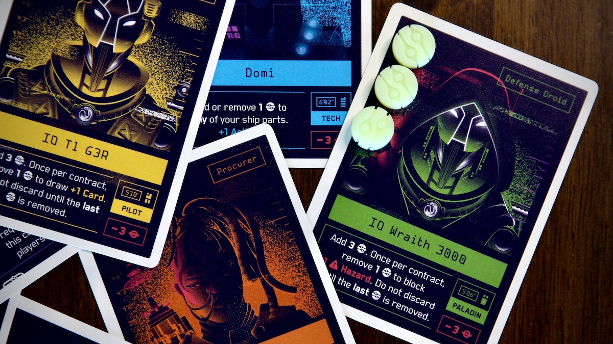 In my experience, victories in Moonrakers without this expansion often come down to the most clever and sneaky negotiator. Shrewd negotiation skills are still crucial with the Overload expansion, but the new cards allow players to craft a powerful deck and ship more quickly. This helps them to complete contracts with little-to-no assistance much earlier in the game. In our plays, the victor seems to be the player who’s managed to build the most streamlined ship and deck. Cooperation still comes into play, but IOSphere power and Advanced Actions allow for a level of independence I haven’t seen much of in the base game alone.