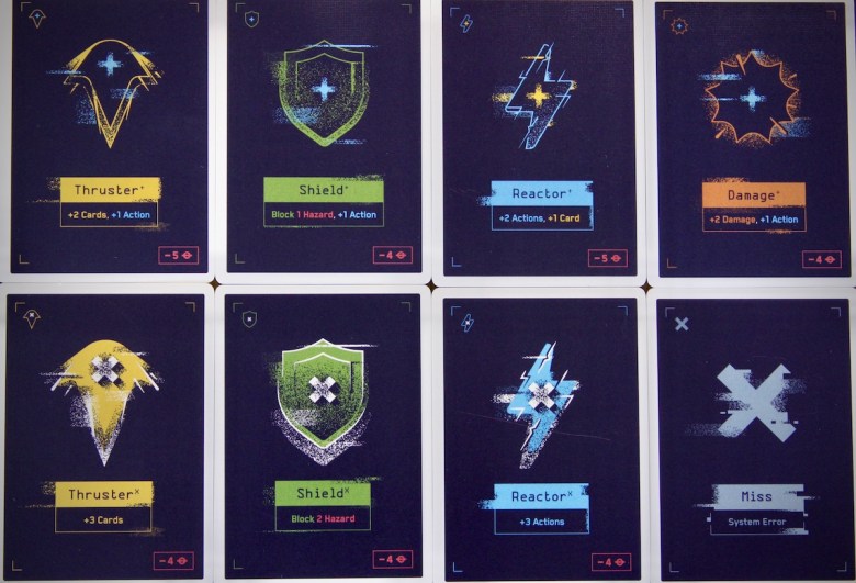 The Overload expansion lives up to its name by stuffing the draw deck with seemingly unlimited deck-building potential, massively upping the replay potential of the game. Advanced Action cards allow for more actions and/or draws and are incredibly powerful. In addition to powerful action cards, new Crew Cards and Ship Parts added to the game often utilize the IOSphere token resource that provides bonuses such as drawing cards and blocking hazards. In addition, two new types of Contracts alter the bidding dynamics.