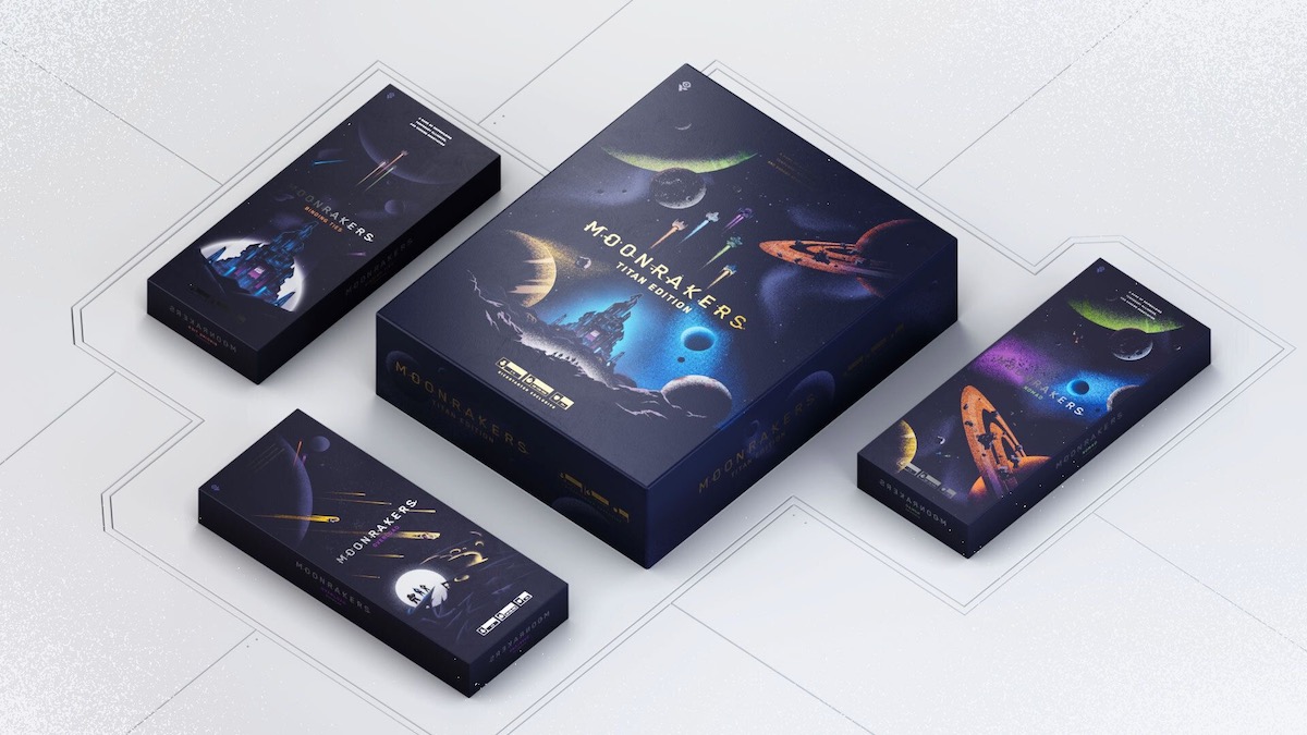 IV Studio is launching the Titan campaign for their deck-building and negotiation game, Moonrakers. Backers will be able to acquire the base game, three modular expansions, a big box to fit all the content, and plenty of surprises that I am not aware of yet. In addition, a digital expansion has been offered free of charge for those who already own the base game.