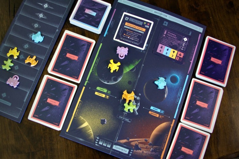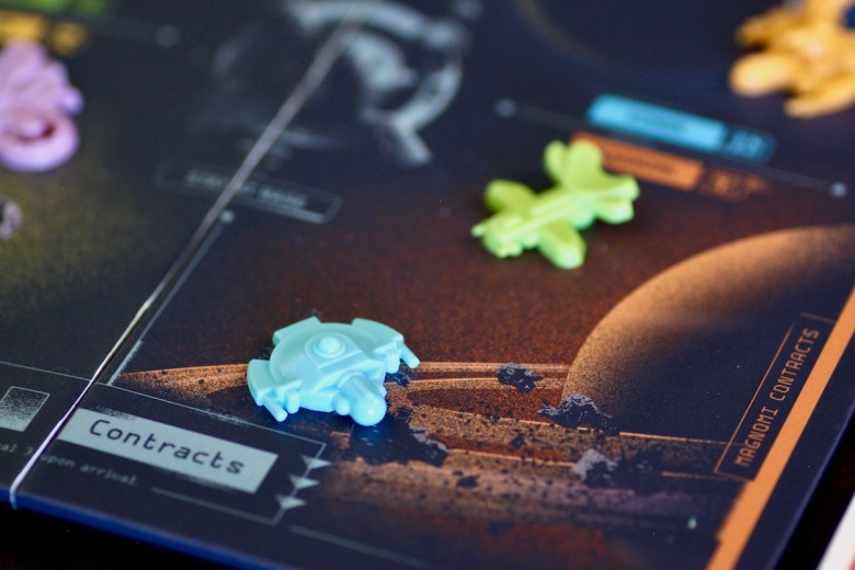 Nomad‘s mechanics tie in well with the thematic elements. The Navigation Board makes sense for a spacefaring game, but it also infuses the Moonrakers with meaningful decisions surrounding movement and contracts. Global Events adds variety and memorable table moments and also boosts player engagement.