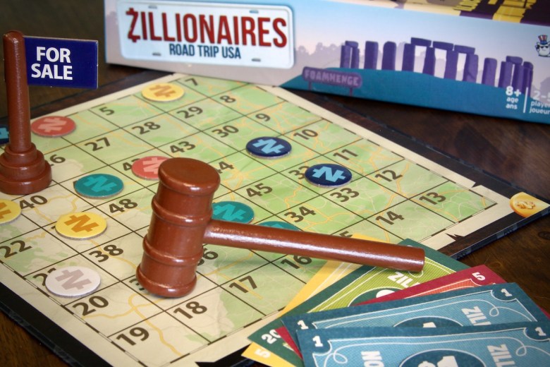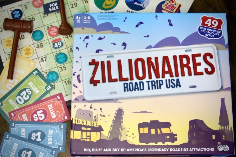 Zillionaires: Road Trip USA is an auction game so it is heavy on social interaction. It facilitates bidding wars, table talk, and bluffing while leaving plenty of room open for social chatting as well. There is direct competition in the game – people can and should try to outbid others on properties they don’t need or at least try to drive the prices up in hopes their competition runs out of money. But the lighthearted nature of the game helps to prevent the interactions from slipping into something that feels mean-spirited.