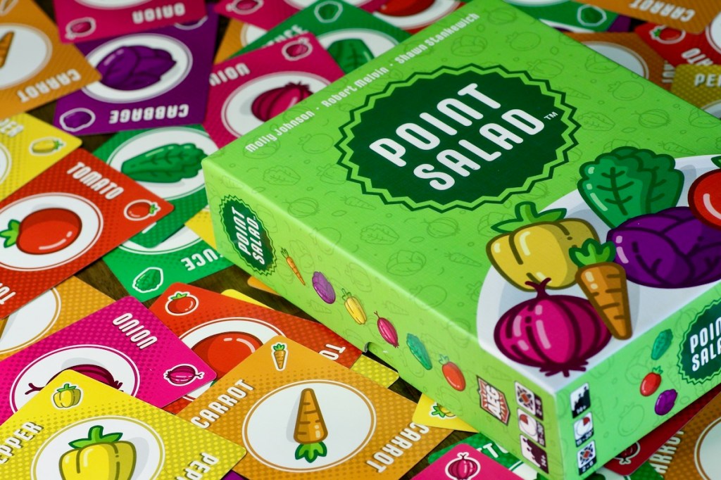 Point Salad is a gem of a gateway game. The rules are simple and the game plays quickly – making it a fantastic choice for new gamers and families. There’s enough strategy baked into the card-drafting mechanic that it is entertaining for more experienced gamers, too (although probably more as a filler game in between heavier fare). Overall it’s just a well-designed card game that is quick, engaging, and fun.