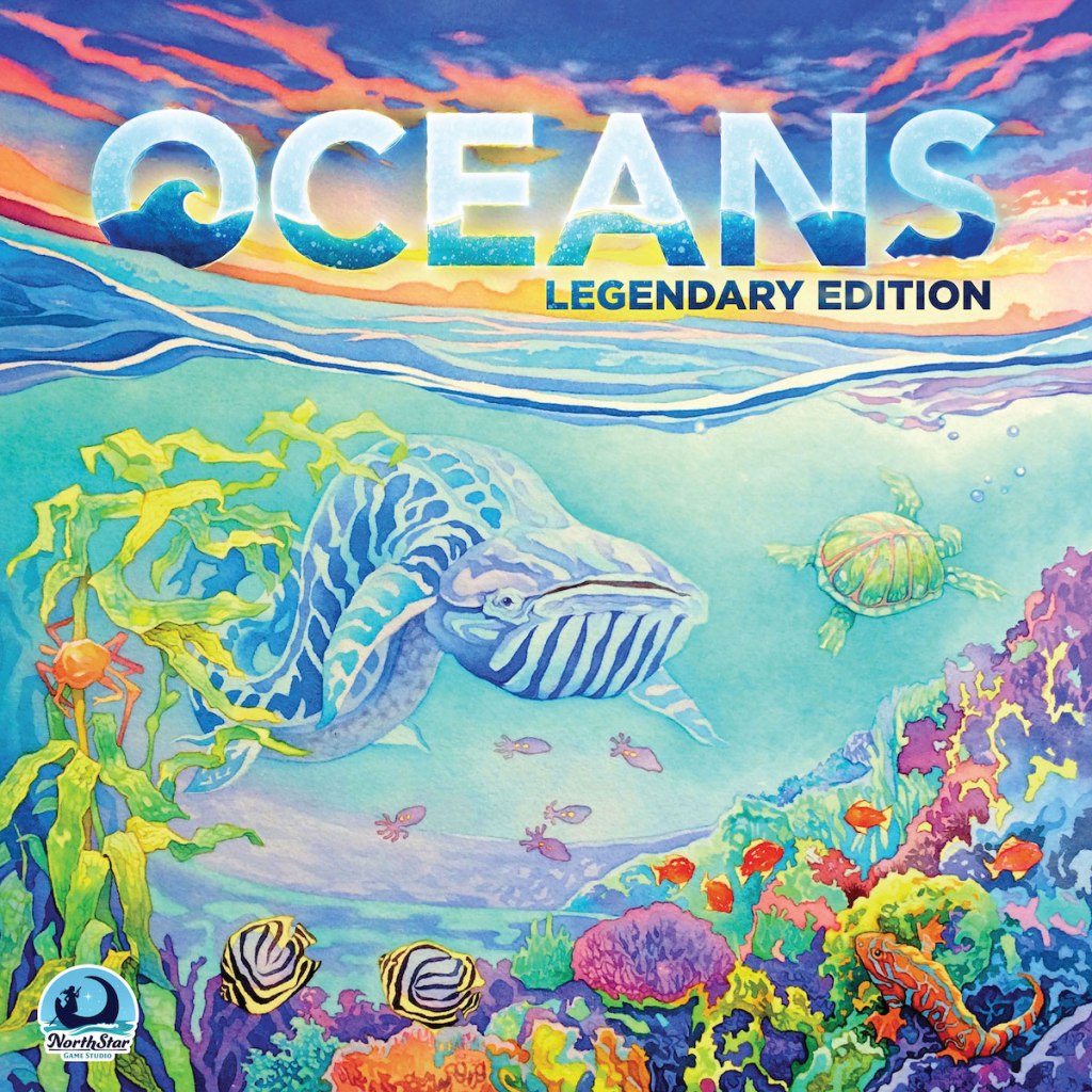 Released in 2020, Oceans is the newest entry in the popular Evolution series by North Star Games. This game allows players to simulate an oceanic ecosystem with creatures whose survival depends on their ability to adapt to an ever-changing environment. Players take turns creating, evolving, feeding, and aging their aquatic creations.