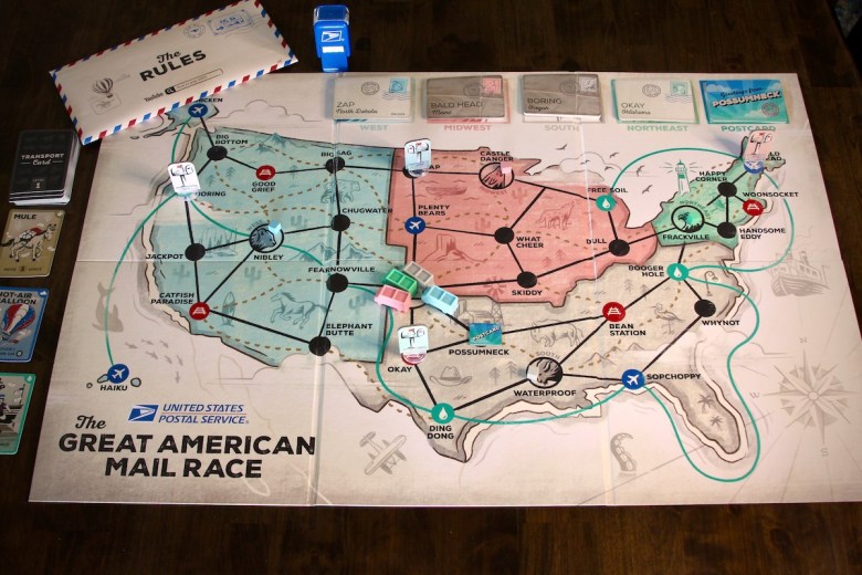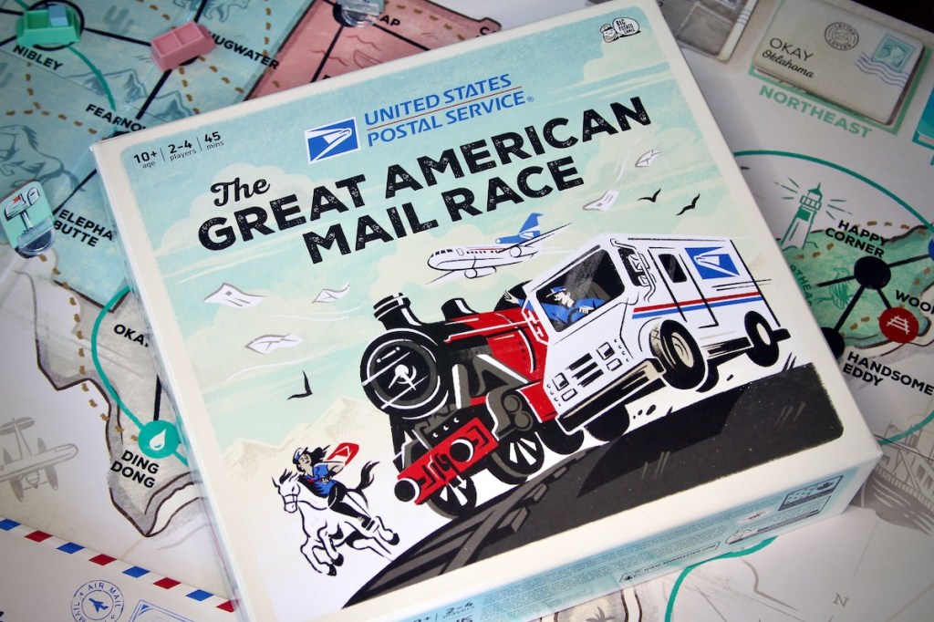 USPS: The Great American Mail Race is a pick-up and-deliver game with a healthy dose of “take that” and plenty of charm.