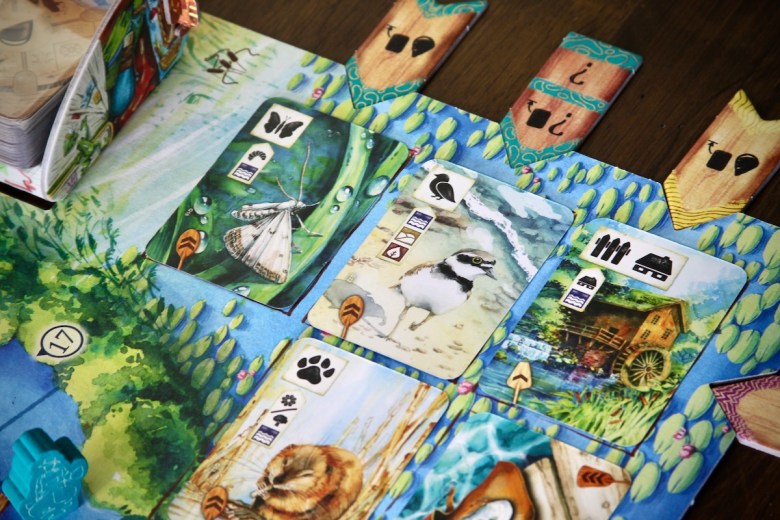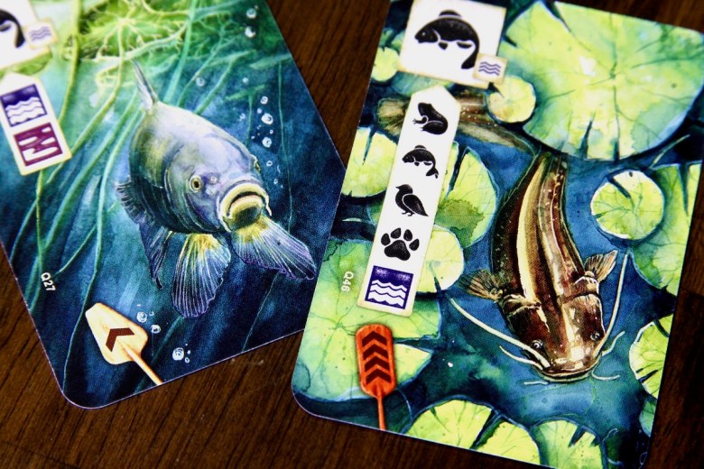 The simple addition of a new ecosystem – the watery ground cards – adds dimension to the meadow-building process. When I play Meadow I rarely hit the 10-card limit for the ground cards. The new ecosystem (and how fish interact with it) has ensured that my husband and I are hitting that limit every game. It forces us to make meaningful decisions about how build our card tableau and adds a bit of needed tension.