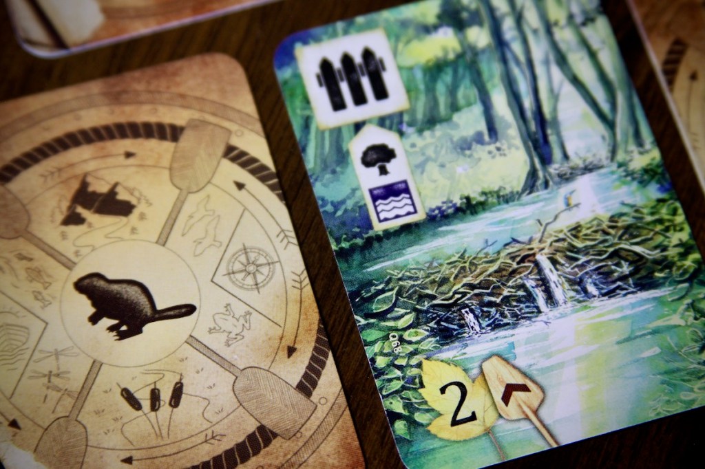 There are limited chances to draft river cards, so players must make wise decisions if they’re hoping to focus on kayaking. There are plenty of easy-to-play cards that may seem tempting but don’t allow for much movement – take that bait too often and you will barely scratch the surface of the river’s bounty. Players who focus heavily on river travel must discover efficient ways to play high-movement cards. The more difficult a river card is to play, the more movement it affords.