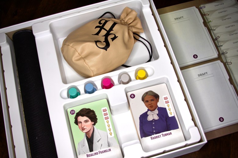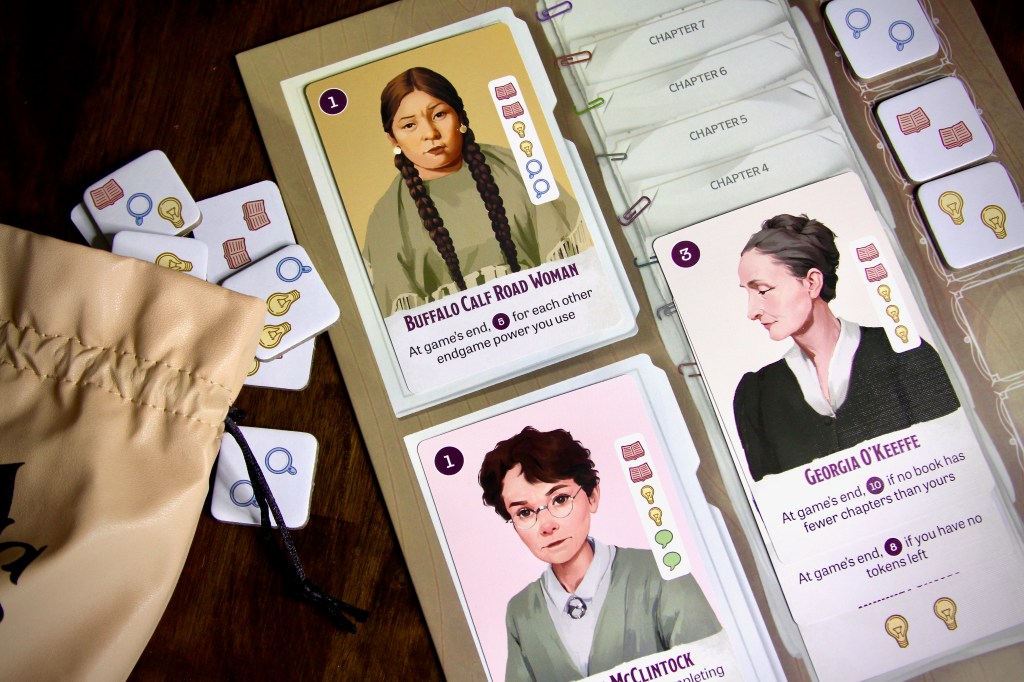 In HerStory, you are an acclaimed author tasked with writing a book about iconic historical women. Your book might include trailblazers in science and mathematics, brave abolitionists, bold voices in the arts, and much more. With 120 real women in the deck, there are plenty of subjects to write about. Alice Ball is just one of many stories that can be found within the game.