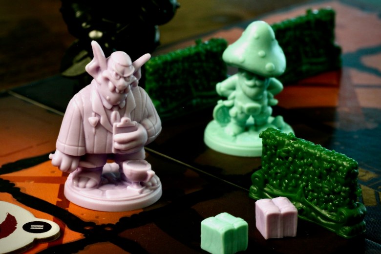 Determining how to manipulate the board state to not only knock off as many opponent’s miniatures as possible but also to anticipate how they might retaliate on their turn and how to best protect yours in the future can be mind-bending. The ability to think ahead in 3-dimensions is a crucial skill to playing well. There are up to six miniatures to manipulate through movement and special abilities, not to mention the ability to literally move the very shape of the Hedgemaze, completely transforming the Groundskeeper’s path, and distracting him to move in a different direction prematurely to his movement phase. These actions can be broken up and taken in any order, giving the player incredible flexibility on how they can manipulate the board state to their advantage. The board may not seem large at first glance, but the possibilities begin to feel endless very quickly. Combine this with the fact that as the game progresses players upgrade their actions giving themselves even more action space and you increase that complexity even more. That’s not even taking into account that a player should be trying to anticipate what their opponent might be able to do on their own turn, and what their asymmetric abilities are… There is so much involved here in such a seemingly simple space that it can start feeling incredibly heavy very quickly.