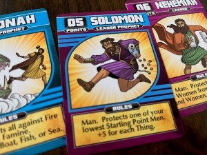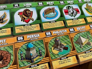 The characters on the cards are linked in clever ways, and the subject matter is handled tastefully so as not to be offensive to players of faith. But those who are coming from an agnostic or atheist background should still be able to enjoy this one – it’s fun, informative, and well done. I honestly was not expecting much when we picked it up, assuming it would be more gimmick than a game, but was pleasantly surprised to find it is a solid, quick drafting game. I’m pleased with this purchase.