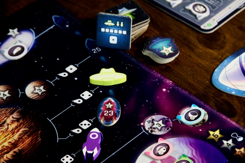 Traveling far along the track is an obvious way to score big, but other paths to victory should not be ignored. Unloading multiplier cats in the right spots, fighting for area majority on key planets, and racing to win the goal tokens all go a long way to boosting a competitive score.