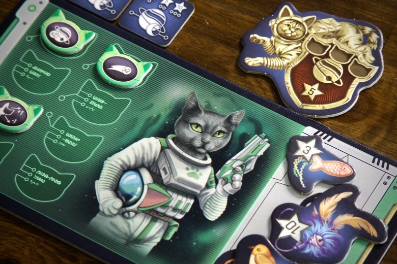 There are several decision points at each turn. The captain has many things to consider while managing fuel for the trip. But the passengers are not powerless – on each mission, they get to choose a specialized cat and can decide when to disembark. All these choices keep players engaged, even when they aren’t captaining the ship.