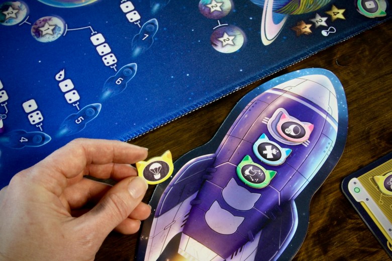 The addition of unique cat astronauts fosters the first choice each round. Each of the eight felines has a unique ability that can affect scoring or the mission. Cat-stronauts can be chosen at random, but shrewd players will quickly deduce which are useful in specific situations. Being late in turn order gives more information, and allows for a bit of opportunism.
