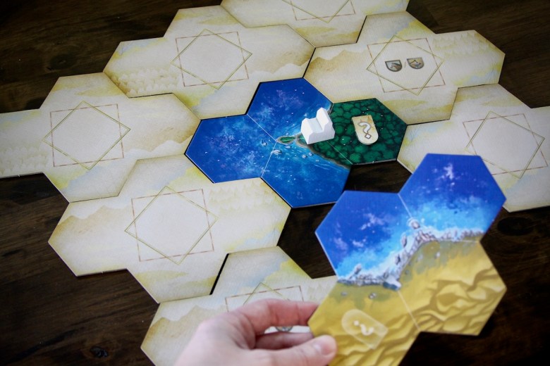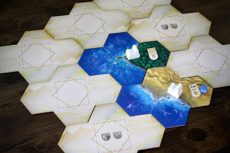 eXplore – Exploration in this game consists of flipping tiles to reveal the terrain, resources, and inhabitants. Before the end of the first era the entire map should be explored since revealing a tile is part of the required turn upkeep. The whole map will be displayed before the end of the first era. The land types are aligned with previously revealed tiles based on a hierarchy. Oceans must be touching other oceans before plains, then deserts… This system ensures that each map will develop in new ways depending on where the tiles are located and the order in which they are revealed.