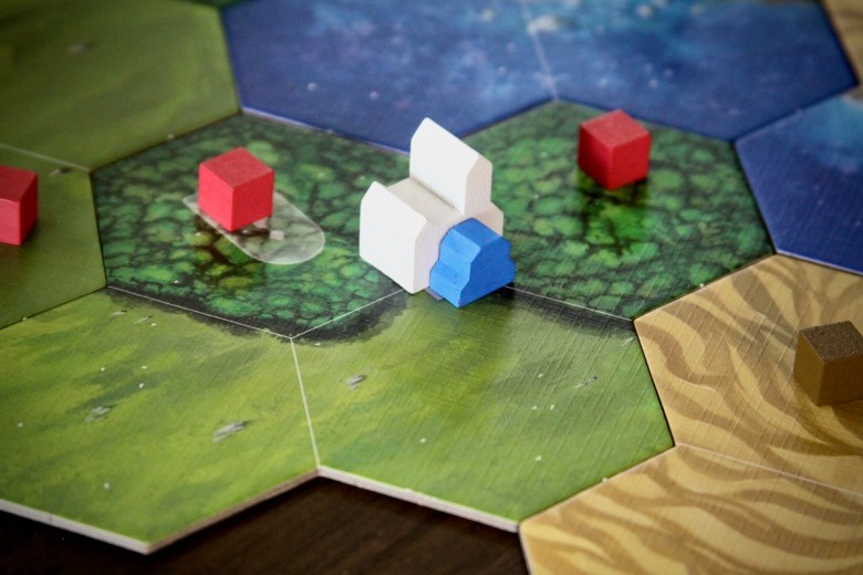 eXpand – Growth and control of territory is crucial in most games in the 4x category, and Epochs is no exception. Expanding to new areas requires resources and access to player cubes. Expansion must occur on neighboring hexes, but nations can create new starting points for branching out by establishing trade with cities.