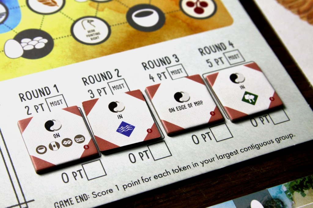 Although the brown “when activated” cards are still the most plentiful, the new card types added to the game are interesting. The teal “round end” cards can be incredibly powerful, and although they are quite rare, the yellow “game end” cards might give players the final point push needed to secure a victory.