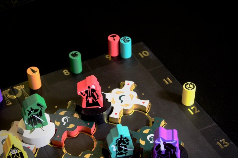 As can be expected from this publisher the production is top-notch. My prototype contained beautiful wood tokens, dual-layered boards, easy-to-understand symbology, and unique card artwork. It’s a joy to look at and play with and I only expect the final product to improve.