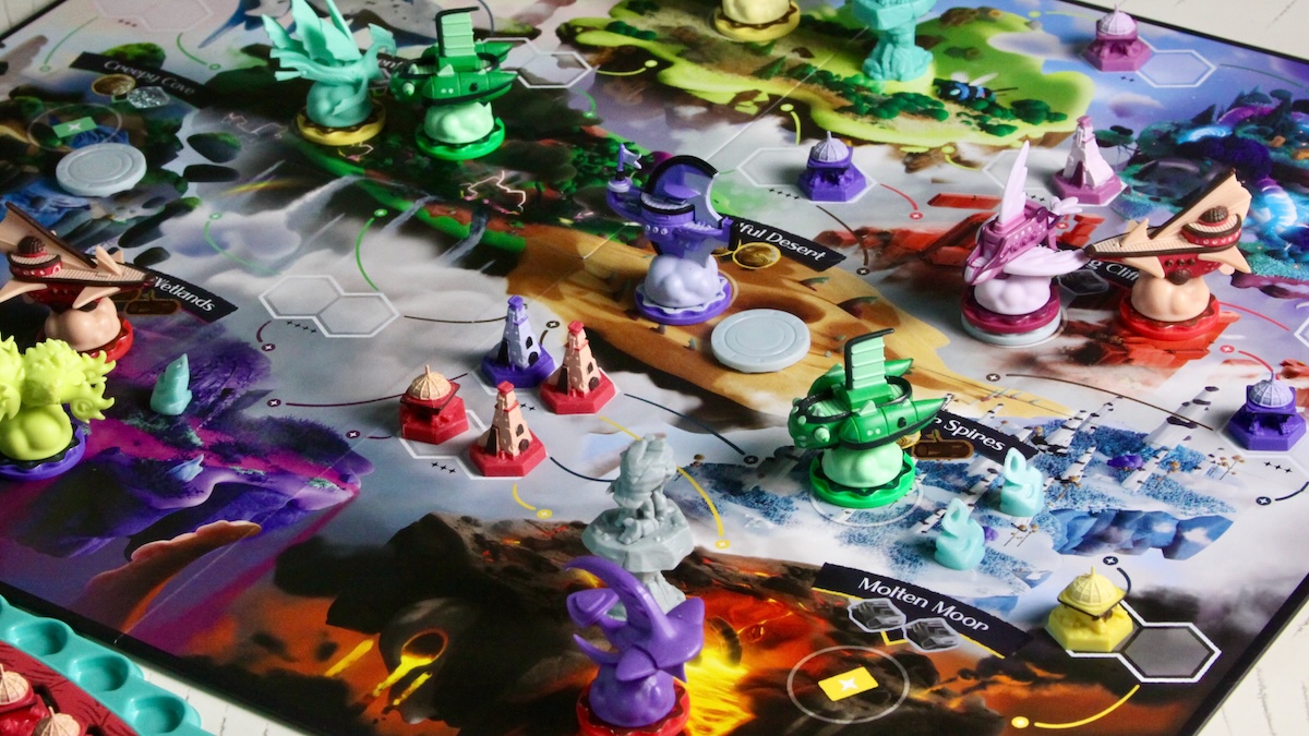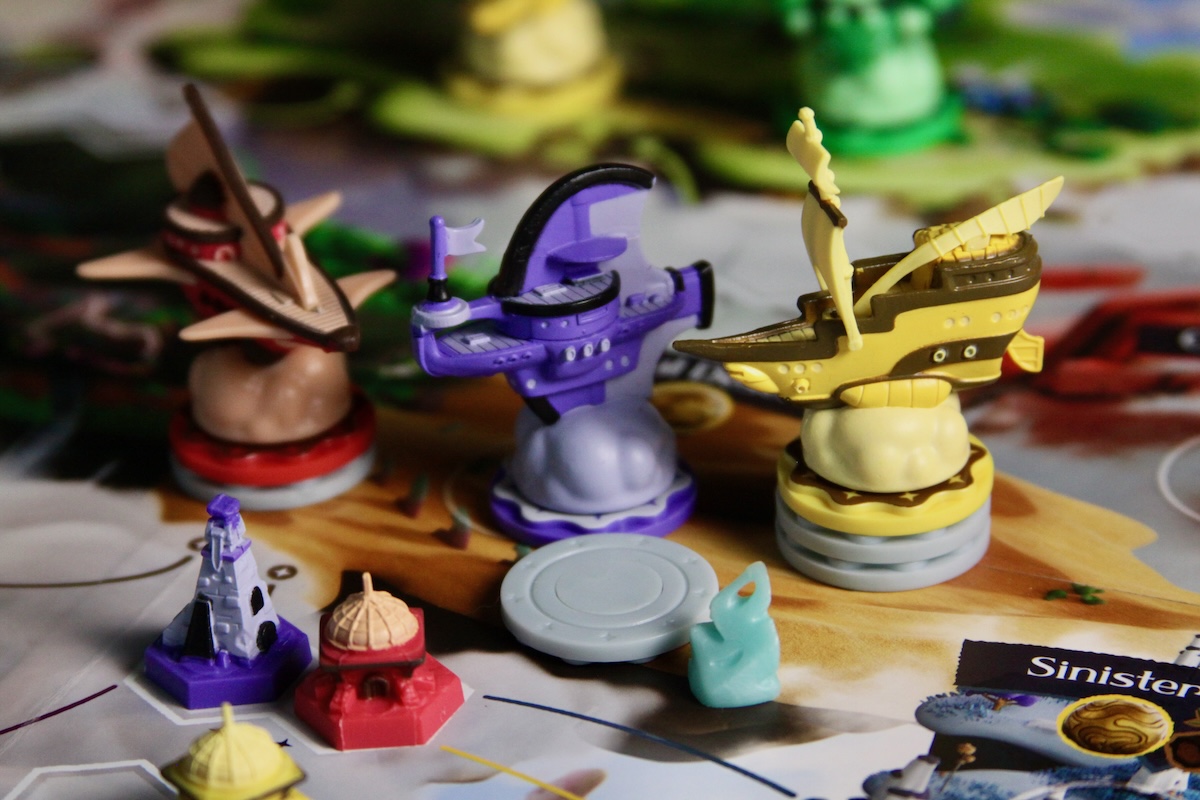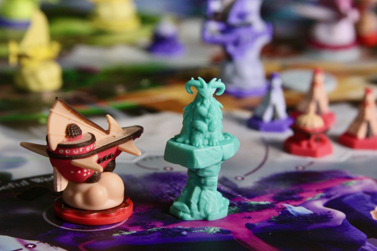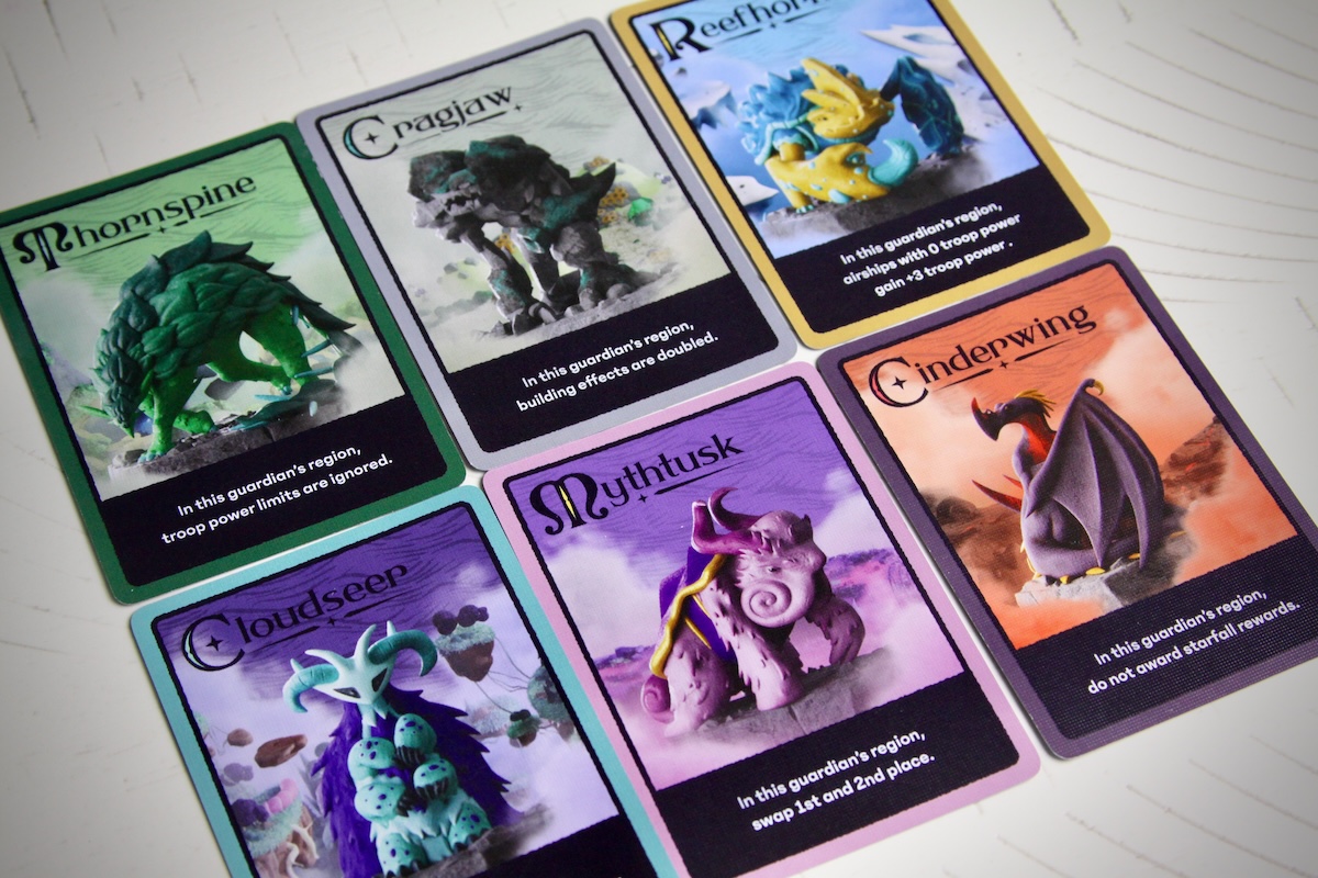 Guardians have unique effects on their surroundings. Some double the associated building effects or modify troop power; one even pauses starfall rewards in its region for the round. Each effect is consequential enough that everyone at the table will be adjusting their plans to reap benefits or avoid consequences. Choosing where the Guardian will be placed is incredibly powerful and may tempt players to place their airships in a region simply to be the one pulling the strings.